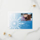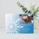 Ange en elegant för dina kommande nuptialer i december, januari eller februari med den festliga vita snöflummen på Spara datum meddelande-kortet för blå vinter-bröllop. Den här anpassningsbarna har vintertemat giftermål behålla i eleganten datumkortet en kompakt utformning av den vita snöflingan på en blå övertoningsbakgrund. Anpassa den med bild, namn och datum.