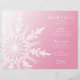 Anpassa den söt White Snowflake på Rosa Winter Wedding Menu med detaljuppgifter om den måltid du kommer att på vintern för möhippa lunch, giftermål eller post-bröllop brunch i december, januari eller februari. Anpassa den med namnen av brudgummen, platsen och händelsemedatum. Den här elegant anpassningsbar Wintery bröllop-menyn har en vit, intrikad snöflake som fäster hörnet med en övertoningsbakgrund för rosa.