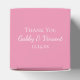 Anpassa den festliga vita snöflummen på Rosa Winter Wedding Favor Box med namn på bruden och brudgummen och datum för deras vinterceremoni eller möhippa i giftermål i december, januari eller februari. De här rutorna för vindrutetorkartor för elegant har en kompakt utformning av vita snöflingor med en bakgrund för rosa av övertoning.