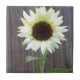 Vit solros mot ett väderstreck kakelplatta