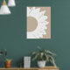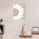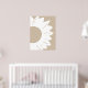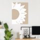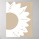 En minimalistisk abstrakt väggkonst med en djärv vit solros med rundade kronblad och en texturerad mitt, mot en varm beige bakgrund. De enkla linjerna och neutrala nyanser skapar en modern, naturinspirerad design som tillför elegans och lugn till alla samtida utrymmen.