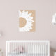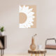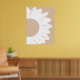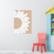En minimalistisk abstrakt väggkonst med en vit solros med rundade kronblad och en djärv cirkulär mitt, mot en mjuk ljusbeige bakgrund. De rena linjerna och neutrala nyanserna skapar en modern, naturinspirerad design som ger värme och elegans till alla moderna interiörer.