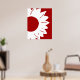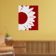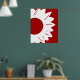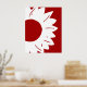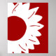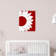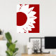 En djärv abstrakt väggkonst med en minimalistisk vit solros med detaljerade kronblad och en cirkulär mitt, mot en livfull röd bakgrund. De rena linjerna och slående färgkontrasten skapar en modern, naturinspirerad design som tillför energi och elegans till alla moderna utrymmen.