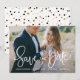 En elegant och ett modernt foto sparar datumkortet med modern kalligrafi med färgstark konetti mönster. Anpassa det här spara datum meddelande genom att lägga till ett eget foto och information. Liknande artiklar finns i min butik.
