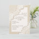 Elegant vit spets med pärlor bröllop bröllopsdusch inbjudan med vit spets på sand beige som täcker två hörn av en vit rektangel med beige kant. Text i brunt. Observera att spets är “utskriven på” och inte riktig tyget. Denna eleganta, sofistikerade och romantiska design är en del av en bröllopssats och är perfekt för ett chic vår-, sommar- eller höstbröllop med en neutral färgpalett.