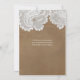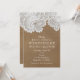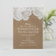 Vit spets och brunt läder rustik chic bröllopsdräk inbjudningar