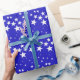 Väntande stjärna mönster med vita stjärnor på mörk blått himlar eller i rymden. Modern lekfull design.