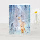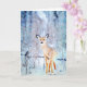 Vacker vinters akvarellmålning av en vit svanshjort med snöigt vinterbakgrund, ute i det kalla vintervädret. Tom insida eller lägg till ditt eget meddelande!