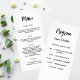 Vit svart bröllopsprogram på menyn Mat Reklamkort