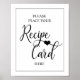 Enkel elegant vit bakgrund och svarta bokstäver med litet hjärta i mitten. Bröllopsbröllopsfest 'Vänligen placera ditt RECEPTKORT här' SKYLT. Matchar alla teman eller stilar.
