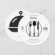 Elegant anpassad rund middagsinbjudan med ren vit bakgrund och stilfull svart text. Prydd med charmiga illustrationer av en sked, gaffel, kniv, tallrik och täckt mat i bakgrunden, perfekt för sofistikerade evenemang och speciella sammankomster. Få din inbjudan att sticka ut med denna raffinerade design.