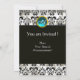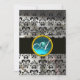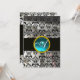 VIT SVART SILKE DAMAST TEAL BLÅ ÄDELSTEN MONOGRAM INBJUDNINGAR