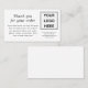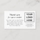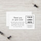 Vit Tack för små Affärskort i beställning, med en logotyp för anpassadets företag, och tack för ett meddelande med kontaktuppgifter.