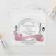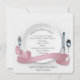 Vit middagstallrik med silverbestick och pastellrosa banderoll för en årsdagsinbjudan