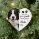 Hjärtformad minnesprydnad för husdjur som du kan ta två foton av ditt sällskapsdjur, ett på vardera sidan. Lägg till deras namn också och levnadsår. Ni lämnat tass avtryck på våra hjärtan i en charmerande typografi i mattsvart på vitt med tass avtryck och hjärta. Kom ihåg ditt älskade sällskapsdjur som har passerat med en hjärtformad personlig för julprydnad med ett foto av din hund eller katt.