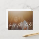 Fin kalligrafi med vita bokstäver som täcker över fotot sparar datumkortet. Detta är en vacker typografi på ett fotokort med vita bokstäver. Det innehåller en övertäckning av ljusövertoning om fotot behöver det bakom texten. Du kan behålla eller ta bort den mjuka övertoningen om du inte behöver den.