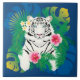 Vit tiger porträtt med tropiskt löv kakelplatta