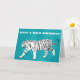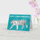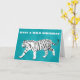 Skicka några vilder på födelsedagskalendrar eller anpassa meddelandet på framsidan och insidan av det här hälsningskortet till användan för alla tillfälle. Kortet visar en vit tiger med svart rand mot en ljusblå eller turkosa blå bakgrund. Meddelandet på framsidan med fet vit text och meddelandet i svart text är redo för anpassningsbarnas beröring.