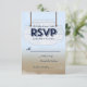 Vit träsign för strandbröllop med svarskort OSA kort