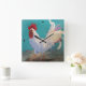 En stolt tupp går över en turkobakgrund i den här roligtens väggklocka perfekt för ditt kök eller matrum! Från en originalmålning av Shelly Penko.
