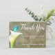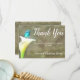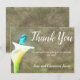 Det här enkla och lantliga vattenfärg tackkortet från Calla Lily och Hummingbird Watercolor Collection är perfekt för naturälskaren med sin lysande turkosa kolibri sittande på en ensam vit calla lily med ljus gulgrön stjälk framför en falsk läderbakgrund. Om du nu gillar fåglar, blommor eller bådadera är detta det perfekta sättet att visa din familj och dina vänner att du uppskattar dem. Anpassa med din egen information.