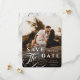 Elegant Vit typografi med Marble Back and Fullt Bleed Photo Save the Date Card är trendig och soo chic, med mörk som tonar ned för att markera texten och en kalligrafi parad med ett klassiskt serif-teckensnitt. Anpassa den med ditt fotografi. Fotokort för bröllop spara datum anpassningsbar! ~ Kolla min butik för att se hela sviten för den här designen!
