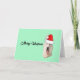 Vit tysk shepherd med en tomtehatt helgkort