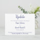 Här är ett enkelt kort för att meddela dina gäster om det blir nödvändigt att ändra ditt bröllop-datum. Använda mallen fält om du vill lägga till dina personuppgifter och göra den här enkla och mångsidiga designen till din egen. Bakgrunden kan ändras till valfri färg. Alla typsnitt och färg är också redigerbara. Var god kontakta alla speciella förfrågningar eller anpassa hjälpen. Det finns även andra delar med alternativ ordalydelse i samlingen.