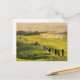 Vykort av ett landskap i Toscana med den berömda Strada Bianca (vit väg/grusväg) Gladiatorvägen mot Terrapille med cypresser längs rutten tidigt på morgonen nära Pienza i Val d'Orcia dalen i Italien med texten: 'Toscana'.