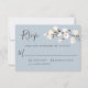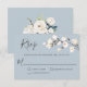 Med modern charm och elegans har den här mångsidiga responskortsdesignen i bröllop neutralt vita blommigtar i mjuka vattenfärgsnyanser av vitt och benvitt, med efterföljande grön bakgrund över en dammig pärlblå bakgrund. Utformningens framsida har en sprit av små vita blommar och baksidan innehåller en vacker bukett av vit ros och hydrangea med andra blandade blommar. Det här är ett bra val för vår och sommaren bröllop. Anpassa textmallen med det svarsdatum som krävs.
