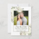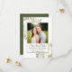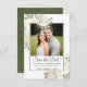 De vackra boho chic blommigt bröllop spara datum-korten har ditt foto omgivet av handmålat vattenfärgsfärgat ro och blommor i blad av elfenbensvitt och grädde. Bildtexten lyder: Spara datum i elegantens skriptskrivning. Det finns utrymme för namn, datum och plats för bröllop nedan. Baksidan är en underbar marmorerad mörk eller oliv grönt färg med ett kluster av samma blommor. Underbart sätt att låta dina vänner och din familj få veta om ditt kommande bröllop.