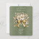 Fira din bröllop genom att skicka ut dessa vackra jul vinterbehängda blommor, gröna blad och guld band design RSVP-kort.