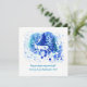 Vacker jul vattenfärg med vita vinterrenar som springer i den snöiga barrskogen gjord i festliga blå färger. Dekorativa färgsprut och uttrycksfulla penseldrag fyller detta konstverk med energi och klassisk julstämning.