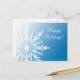 Skicka varma hälsningar till vänner och familj med den kommande vita vintersnöflummen på blått Glad helg-vykort. Den här elegant anpassningsbarna Snowflake-julkort har en kompakt vit snöflingdesign på en övertoningsblå bakgrund.