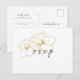 Modern minimal chic. Det här vackra vykortet för OSA har en uppsättning contemporary typsnitt i jet svart mot en skarp vit bakgrund och en känslig blommigt i faux guld.