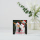 Personlig, liten, fyrkantig vykort som har en fantasifull fotobild av vita ankor som bär röda tomteluvor och önskar en God Jul. En rolig, djur holiday design! Anpassa baksidan av ditt kort genom att redigera namn/namn. Välj din kortstil.