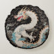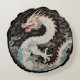 Den här rundan i dekorativ kudde har en vit asiatisk stil-drake och moln på en svart bakgrund.