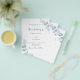 Vita blåa eukalyptus budget bröllopsinbjudan flygblad