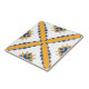 Vibrant dekorativ ruta i Medelhavet stil med symmetriska geometriska former i vitt, blått och orange.