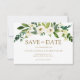 Vita blommande blommor Spara datum-inbjudan