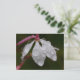 Postkort med närbildsfoto av regndroppar på vit blomma