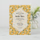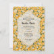 Eleganta vita blommor på solskensgult accentuerade med grön lövverk, vackra för vår- eller sommarbröllopsfestinbjudningar. All text, teckensnitt, färger, storlekar kan ändras, klicka bara på länken Anpassa ytterligare. Välj Matt finish om du föredrar tjockare papper.