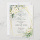 Vit ros greenery eucalyptus guld geometrical ram blommigt bröllopsinbjudan med QR OSA-kod längst bak.