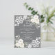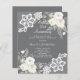 För en elegant och romantisk 25:e bröllop-årsdag. En grått-bakgrund som dekorerats med vita blommigtar, ro och vita snöre. Anpassa och lägg till namn och information. 1 lakan = 1 inbjudan tryckt kant till kant.