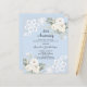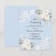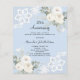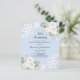 För en elegant och romantisk 25:e bröllop-årsdag. En ljusblå bakgrund med vita blommigtar, ro och vitt snöre. Anpassa och lägg till namn och information. 1 lakan = 1 inbjudan tryckt kant till kant.