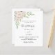 Vit bakgrund, dekorerad med vita blommor, ponnyer och grön. Anpassa och lägg till bridens namn för att vara och närmare party. Svart och guldfärgad färgad brev. 1 lakan = 1 inbjudan tryckt kant till kant.