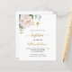 En vit bakgrund som dekoreras med eukalyptus greenery, en vit peony och guldfärgad löv. Personalisera och barn namn och ceremoniuppgifter. Svart och guldfärgad färgad brev. 1 lakan = 1 inbjudan tryckt kant till kant.