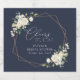 Lägg till en personlig beröring till din möhippa firande med dessa snyggtar och minnesvärda party-objekt! Konstruktionen har vita vattenfärgblommor, grönt och guld ram på marin blå bakgrund.