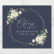 Lägg till en personlig beröring till bröllop firande med dessa snyggtar och minnesvärda party! Konstruktionen har vita vattenfärgblommor, grönt och guld ram på marin blå bakgrund.