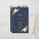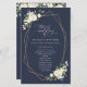 Lägg till en personlig touch till din bröllopsfest med dessa stilrena och minnesvärda festartiklar! Designen har vita akvarellblommor, grönska och guldram på marinblå bakgrund.